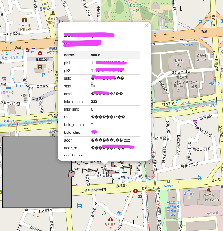 얘가 알아서 콘텐츠를 geoserver를 통해 가져오고, 그걸 테이블로 그린거다.